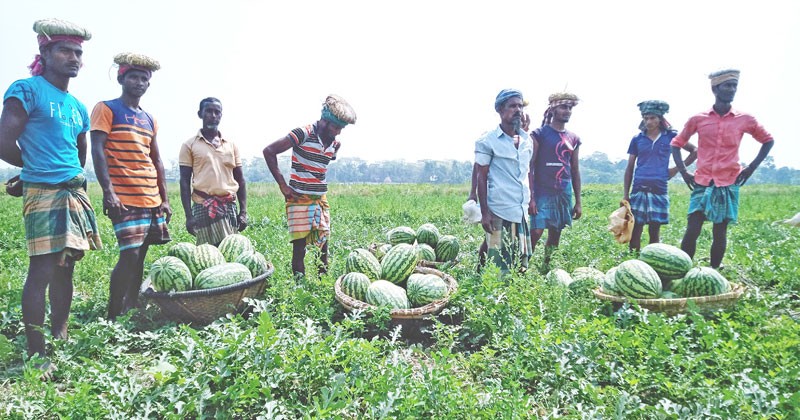 নভেম্বর মাসের মাঝামাঝি সময় চাষিরা পলিব্যাগে তরমুজ চারা উৎপাদন করেছে। ওই চারা জমিতে রোপণ করেছেন। ইতোমধ্যে চারার ডগায় ফুল ধরেছে। আগামী এক মাসের মধ্যে গাছে তরমুজের ফলন আসবে বলে জানান কৃষকরা।