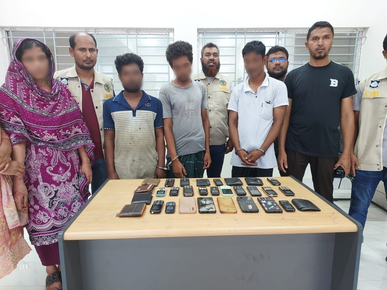অভিযান পরিচালনায় অভিযুক্ত ১। সাইদুল ইসলাম শান্ত (৪২), পিতা- মৃত আ: ছাত্তার মেলেটারী, মাতা- নছিরন বেগম, স্থায়ী সাং- দাওকাঠী, ১২নং রঙ্গশ্রী ইউপি, থানা- বাকেরগঞ্জ, জেলা বরিশাল। বর্তমান সাং- মো: আবুল হোসেন এর ভাড়াটিয়া, মসজিদ গলি, ০১নং সিএন্ডবি রোড, ১৩নং ওয়ার্ড, থানা- কোতয়ালী মডেল, জেলা- বরিশাল ০২। বাপ্পি লস্কর (২৮), পিতা- মন্নাফ লস্কর, মাতা- মৃত মাহাফুজা বেগম, সাং- মধ্য কামদেবপুর, থানা- নলছিটি, জেলা ঝালকাঠি। বর্তমান সাং- জনৈক রিয়াজের বাসার ভাড়াটিয়া, ধান গবেষনা রোড, থানা- কোতয়ালী মডেল, জেলা- বরিশাল ০৩। মো: নাজমুল (৩০), পিতা- আলী আকবর ফকির, মাতা- নাসিমা বেগম, সাং- মোস্তফাপুর বাঘেরপাড়া, ০৪নং ওয়ার্ড, থানা- মাদারীপুর সদর, জেলা- মাদারীপুর। বর্তমান সাং- রায়াপুর, জনৈক হাসান মল্লিক এর বাসার ভাড়াটিয়া, থানা- নলছিটি, জেলা- ঝালকাঠি ০৪। সাথী আক্তার (৪০), পিতা- মৃত ইয়াকুব আলী, মাতা- ছকিনা বেগম, সাং- চানপুরা শরীফ বাড়ী, থানা- বন্দর, জেলা- বরিশাল, বর্তমান সাং- দারোগা বাড়ী, ধান গবেষনা রোড, থানা- কোতয়ালী মডেল, জেলা- বরিশালদের গ্রেপ্তারপূর্বক তাদের হেফাজত হতে চোরাইকৃত একটি হলুদ অটোরিকশার খন্ড খন্ড অংশ ও চোরাই কাজে ব্যবহৃত ১৭ টি সিম বিহীন মোবাইল ফোন উদ্ধার করেন।